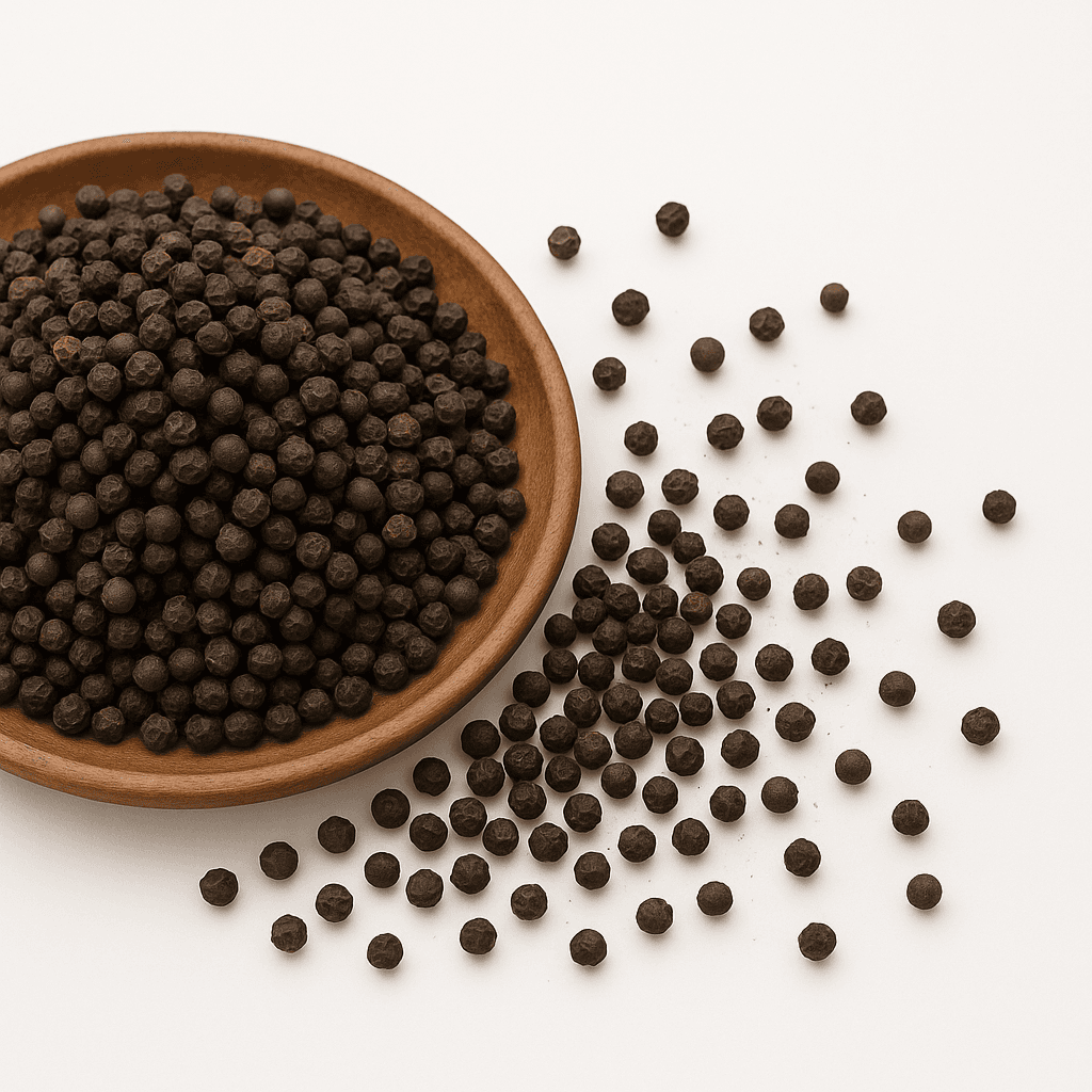 Cerný pepr je pravdepodobne nejznámejší z mnoha druhu pepre. Zelené, nedozrálé bobule se trhají a fermentují na slunci, dokud nejsou cerné. Tím se vyvíjí chut a typická ostrost. Je nepostradatelnou soucástí naší každodenní kuchyne a vynikajícím doplnkem k zelenine, polévkám, omáckám, marinádám, salátum, krátce pecenému a grilovanému masu, guláši a testovinám.
