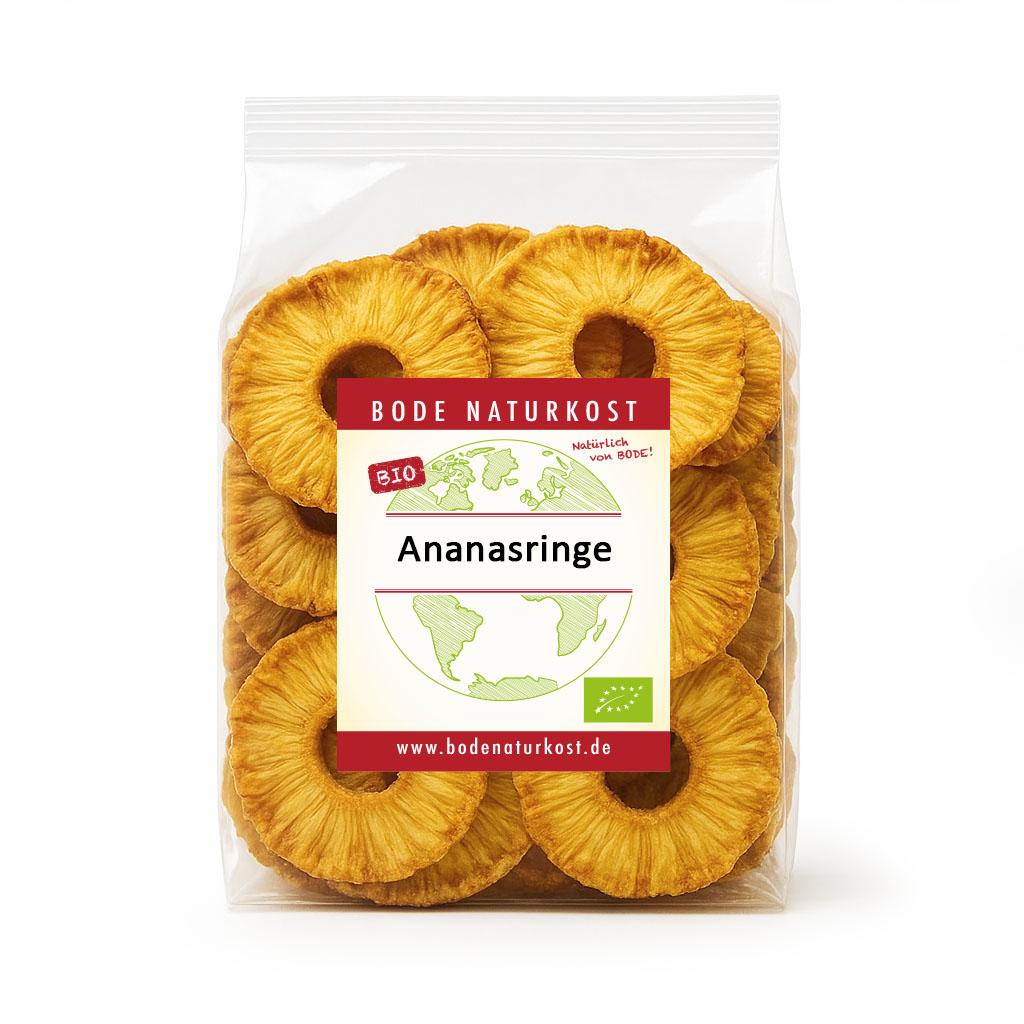 Sušené kroužky z ananasu bez jádra. Zlate žlutá dužnina je prirozene sladká a má chut ovocné kyseliny. Sušený ananas je bohatý na vlákninu. Chutná ciste jako snack a v mixu.