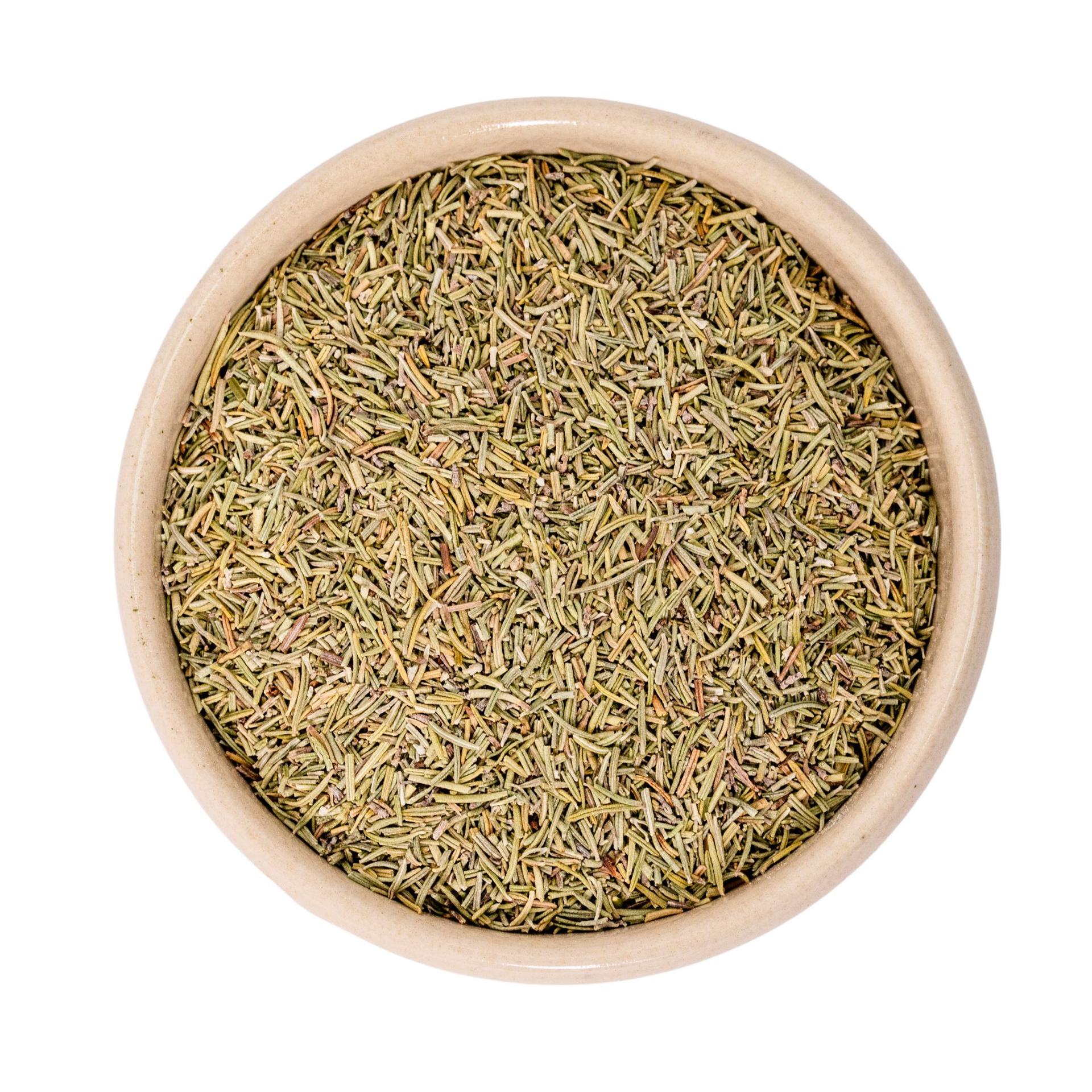 Sušené a nasekané lístky rozmarýnu merí 2 až 4 mm a jsou svetle až tmave zelené. Rozmarýn má zvláštní, ostrou a intenzivní chut. Používá se predevším v mediteránské kuchyni a dodává pokrmum z ryb a masa, peceným bramborám, ruzným zeleninovým kreacím, pizze a pecivu jako je focaccia nádech letní dovolené. V kombinaci s citronovou kurou rozvíjí svou chut i v domácích limonádách nebo sušenkách.