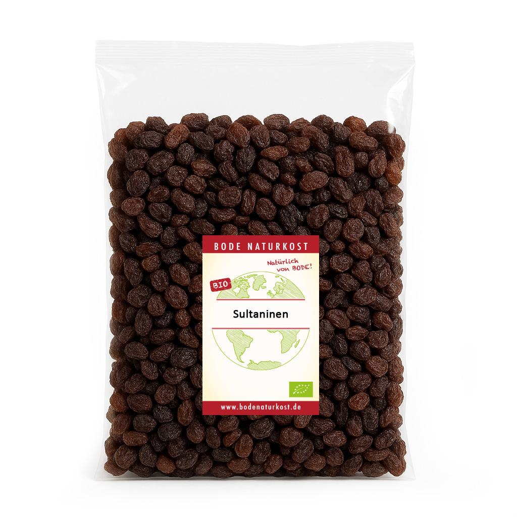 Sultaniny jsou sušené svetlé hrozny odrudy Thompson Seedless, které jsou bezkmenné a zvlášte sladké. Stredne až tmave hnedé plody mají prírodne sladkou chut ovoce a jsou zdrojem vlákniny. Vynikají jako prísada do müsli, peciva, studentu a mnoha dalších jídel. Bio